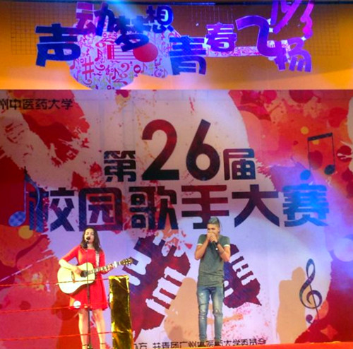 在刚结束的学校第26届校园歌手大赛上,国际学院2013香港学生叶家俊及2015级俄罗斯留学生波丽娜作为总决赛选手参与了本次大赛,这是国际学院首次有外国留学生参加校园歌手大赛,不仅为大赛增色不少,而且也更好地促进了我校境内外学生的互动、交流!