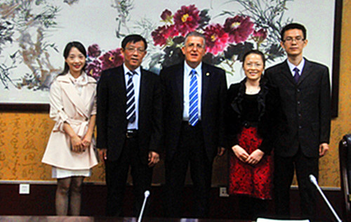 许能贵副校长向拉文大学代表团介绍了我校的基本情况,经济与管理学院负责同志介绍了该院的专业设置及国际合作情况。Dr. Ibrahim (Abe) Helou院长表示对我校在教育和国际交流方面取得的成就印象深刻,期待双方开展商业与公共管理方面的合作。
