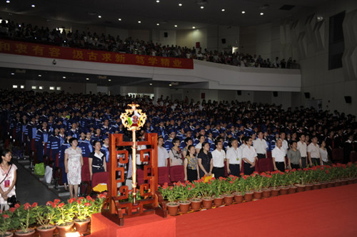 6月27日下午,国际学院2013届毕业典礼暨2013年学位授予仪式在大学城校区大会堂举行。学校领导、20余名主礼教授以及2013届全体毕业生及亲友参加仪式。学位评定委员会主席、校长王省良教授亲自为我院获得学士、硕士和博士学位的学生逐一授予学位。