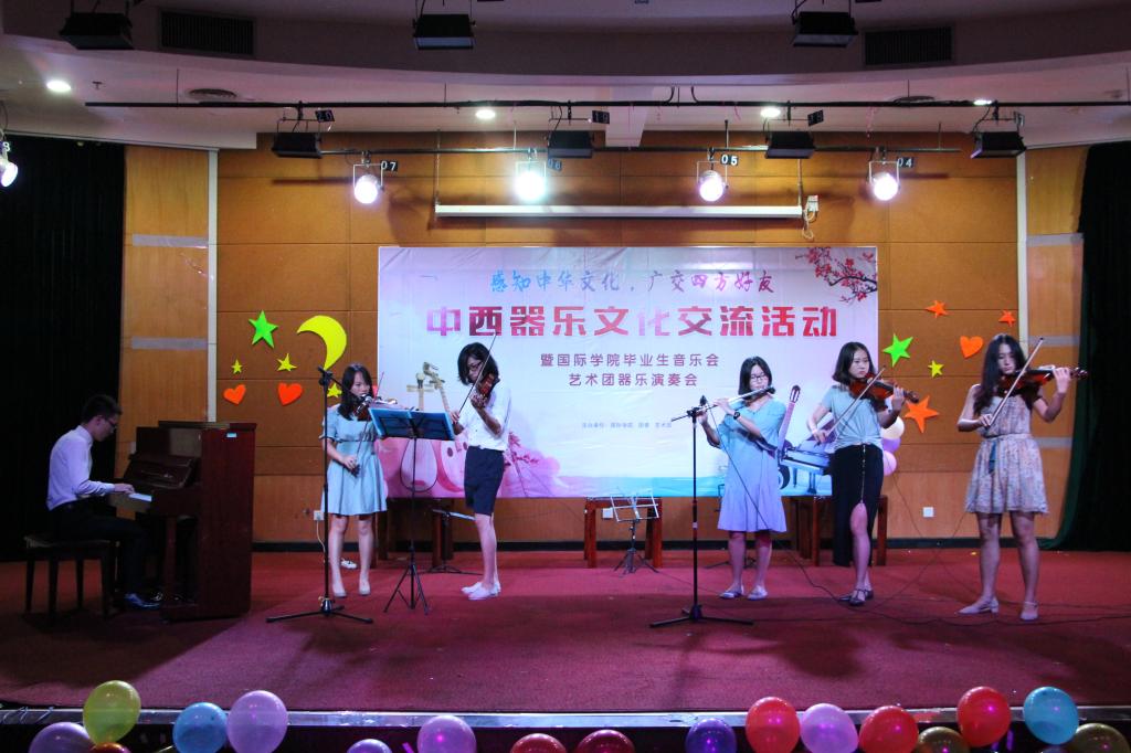 6月1日晚,“感知中华文化,广交四海好友”中外学生手牵手系列活动之中西器乐文化交流活动暨国际学院毕业生音乐会在学校大学城校区学生活动中心四楼礼堂成功举办。