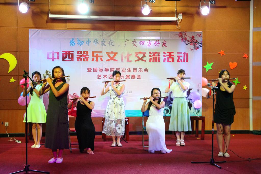 音乐是反映人类现实生活情感的一种艺术,也是人际交流交往中一个重要桥梁。为了促进我校中外学生的交流互动,本期“感知中华文化,广交四海好友”中外学生手牵手系列活动以中西器乐文化交流为主题,由学校艺术团同学以及留学生们共同为师生们带来一场丰盛的音乐文化盛宴。同时,本次活动也是作为国际学院毕业季系列活动之一,为境外毕业生们送上一份动听悦耳的毕业好礼。