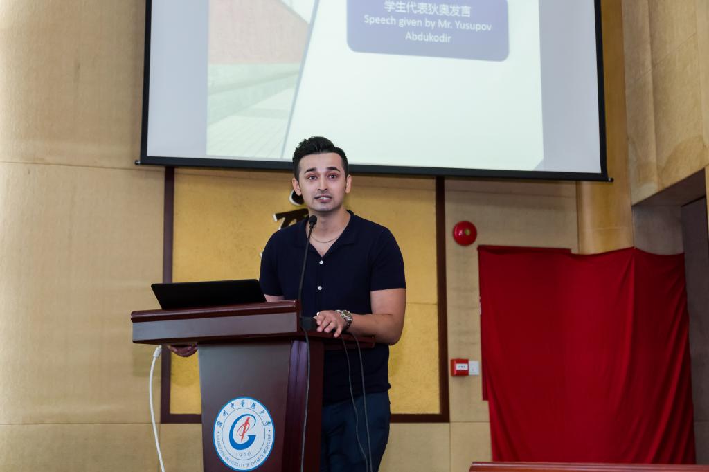 在启动仪式上,我校中国政府奖学金生塔吉克斯坦狄奥作为学生代表上台进行了发言,他分享了自己的中医求学之路,以及希望通过参加此次活动,让大家学到更多的中医药防病治病的知识,寄望大家今后回到自己的祖国后,继续担当各国文化与中国文化交流互鉴的使者。