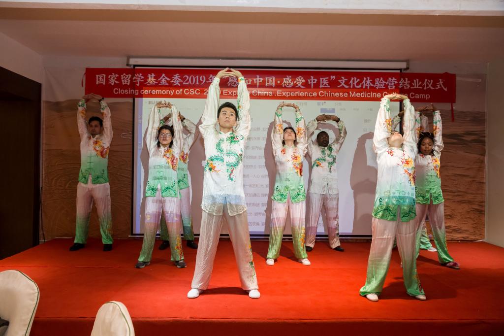 10月25日下午,举行了体验营结业仪式。在结业仪式上,来自五所高校的10余名留学生代表纷纷发表了发至肺腑的感言。最后,在中医药保健养生操“八段锦”的学习体验中,整个体验营正式落下帷幕。